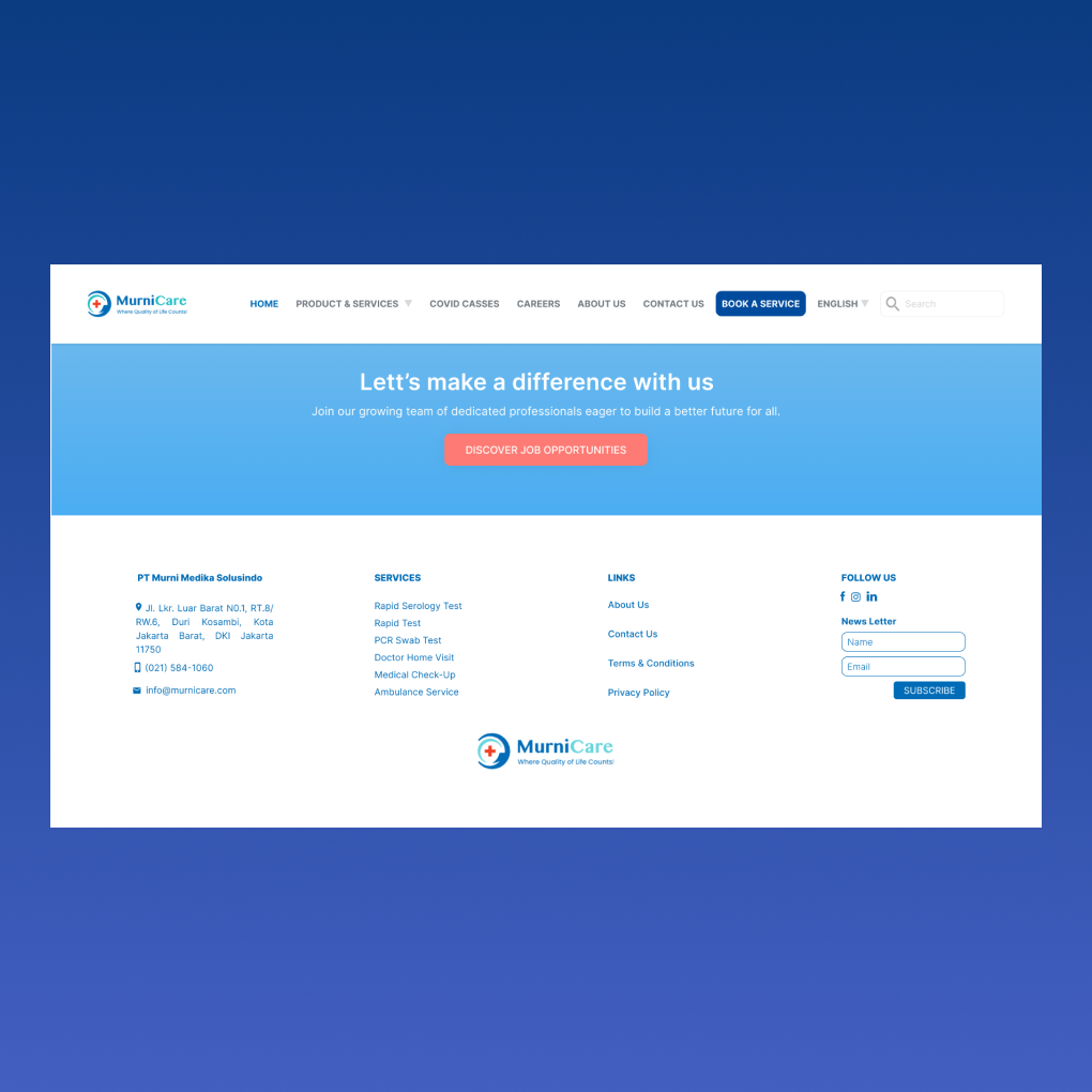 This project is a task from one of the recruitment processes that I am participating in, which is to redesign the layout of the MurniCare website for desktop and mobile sizes.