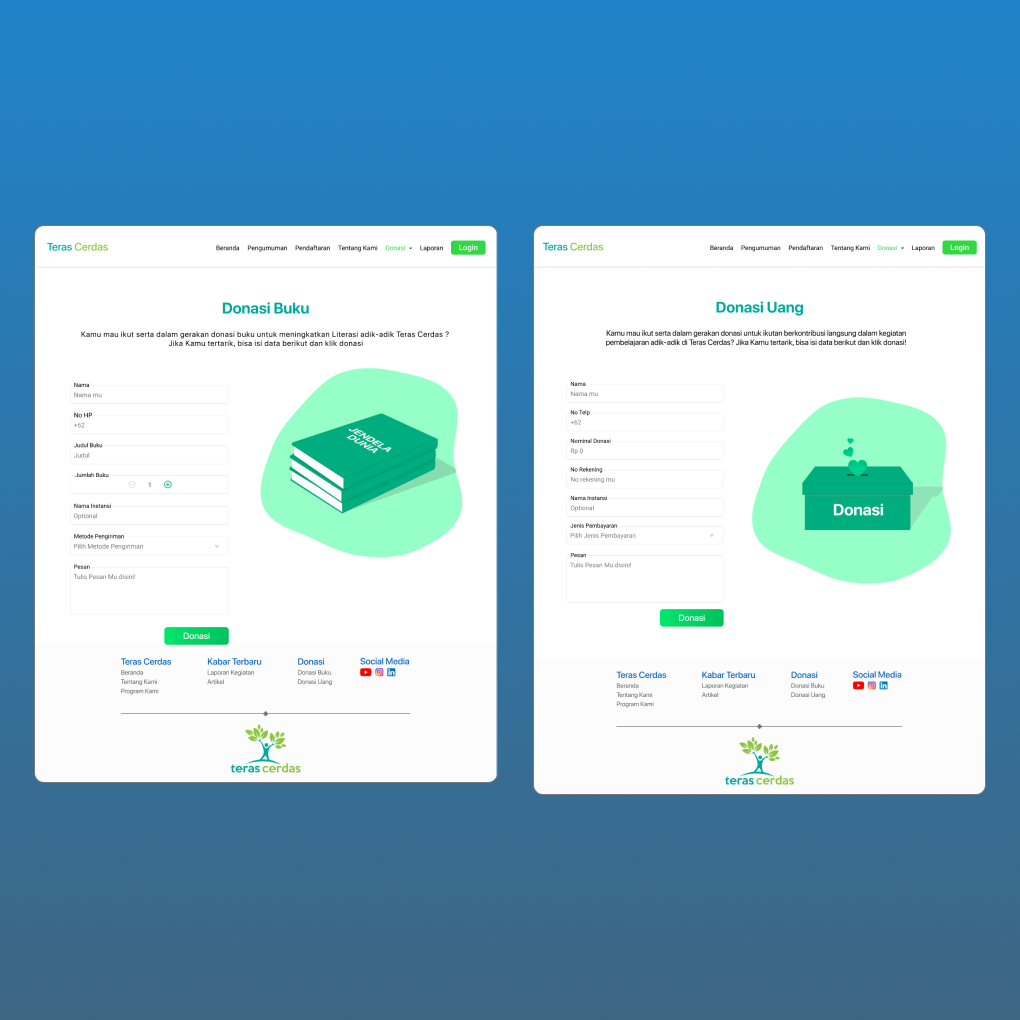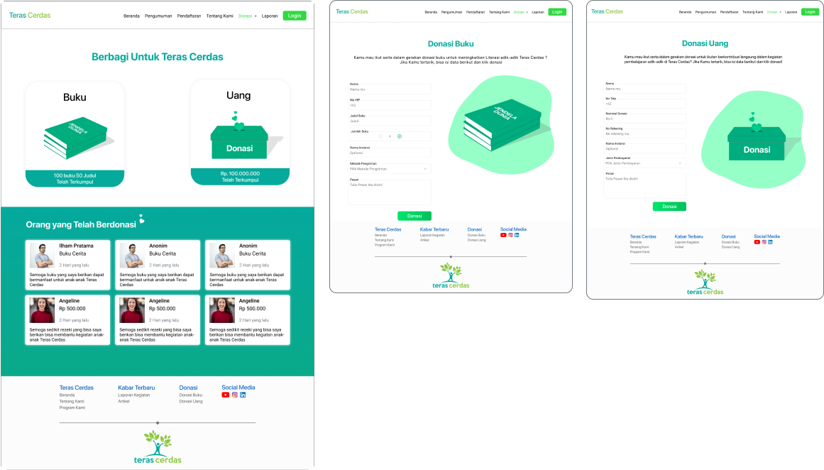 Creating a donation feature that allows anyone to donate through the Teras Cerdas website. This provides donors with the option to donate either through the website or directly through the contact information provided on Instagram.