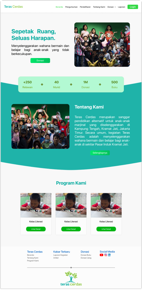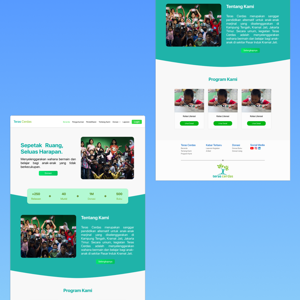 Teras Cerdas is a community that is engaged in alternative education for marginalized children who live in Pasar Induk Kramat Jati area. The website is used as a means to disseminate information and registration for volunteer managers and educators by Teras Cerdas. The update of the Teras Cerdas website is needed to improve the quality and engagement of the website, therefore research is conducted to revamp the website with the following objectives: